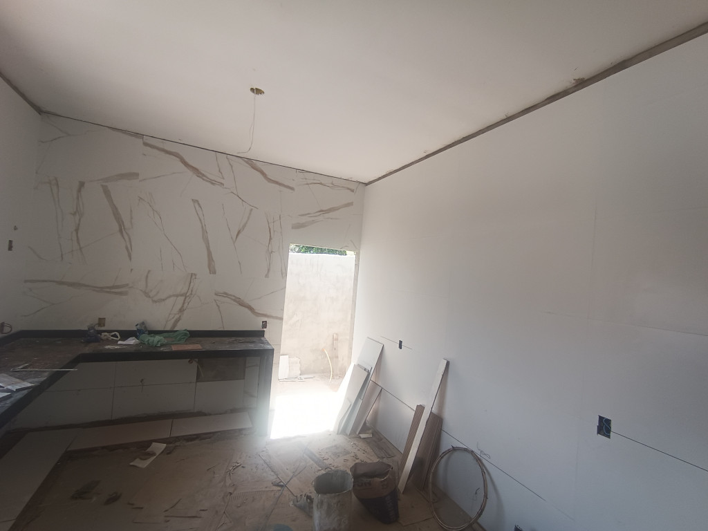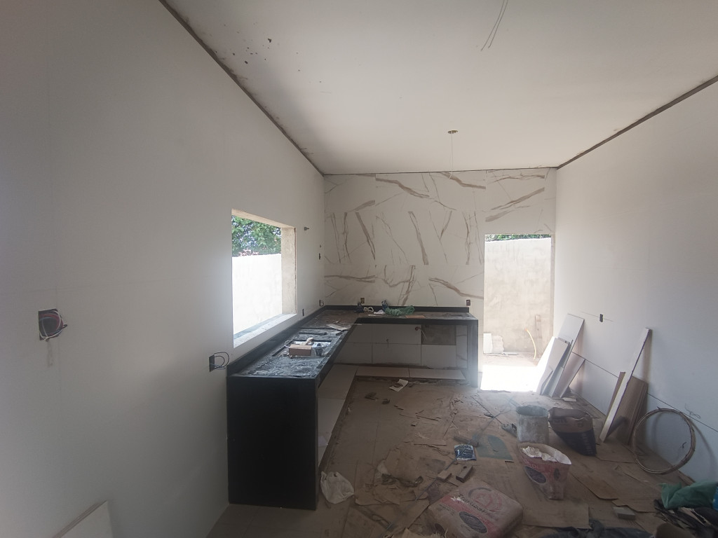 UMA casa nova, com 2 quartos simples, 1 suite, 1 sala e cozinha, banheiro social, lavanderia, garagem ampla a ser coberta, oportunidade local central da cidade.